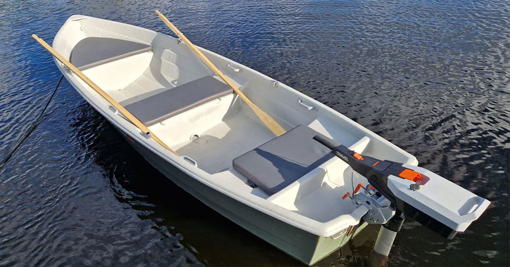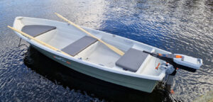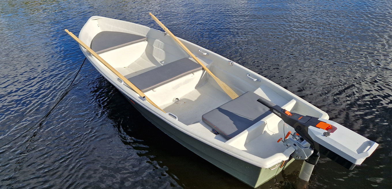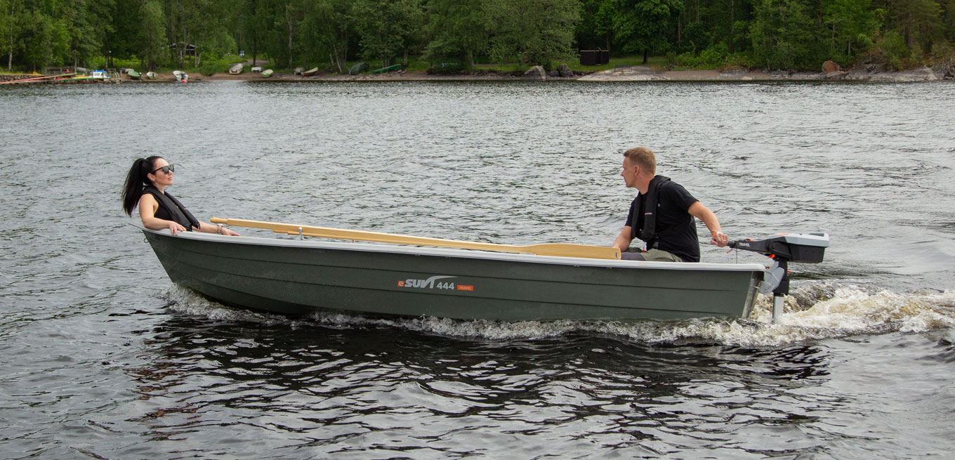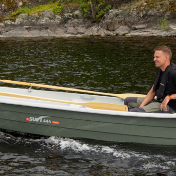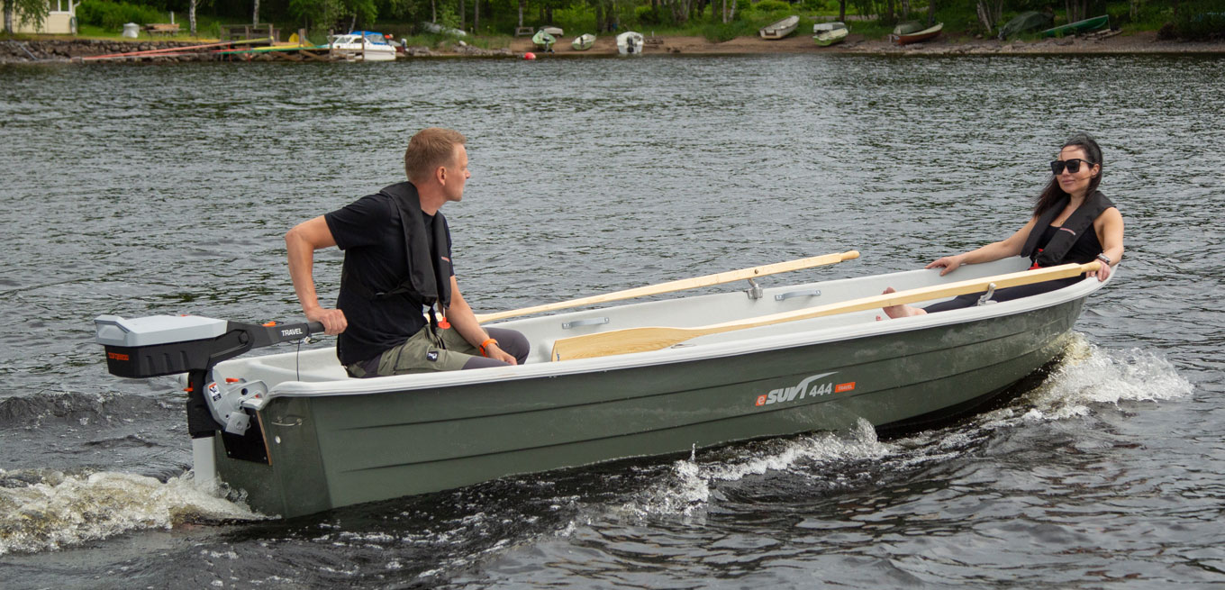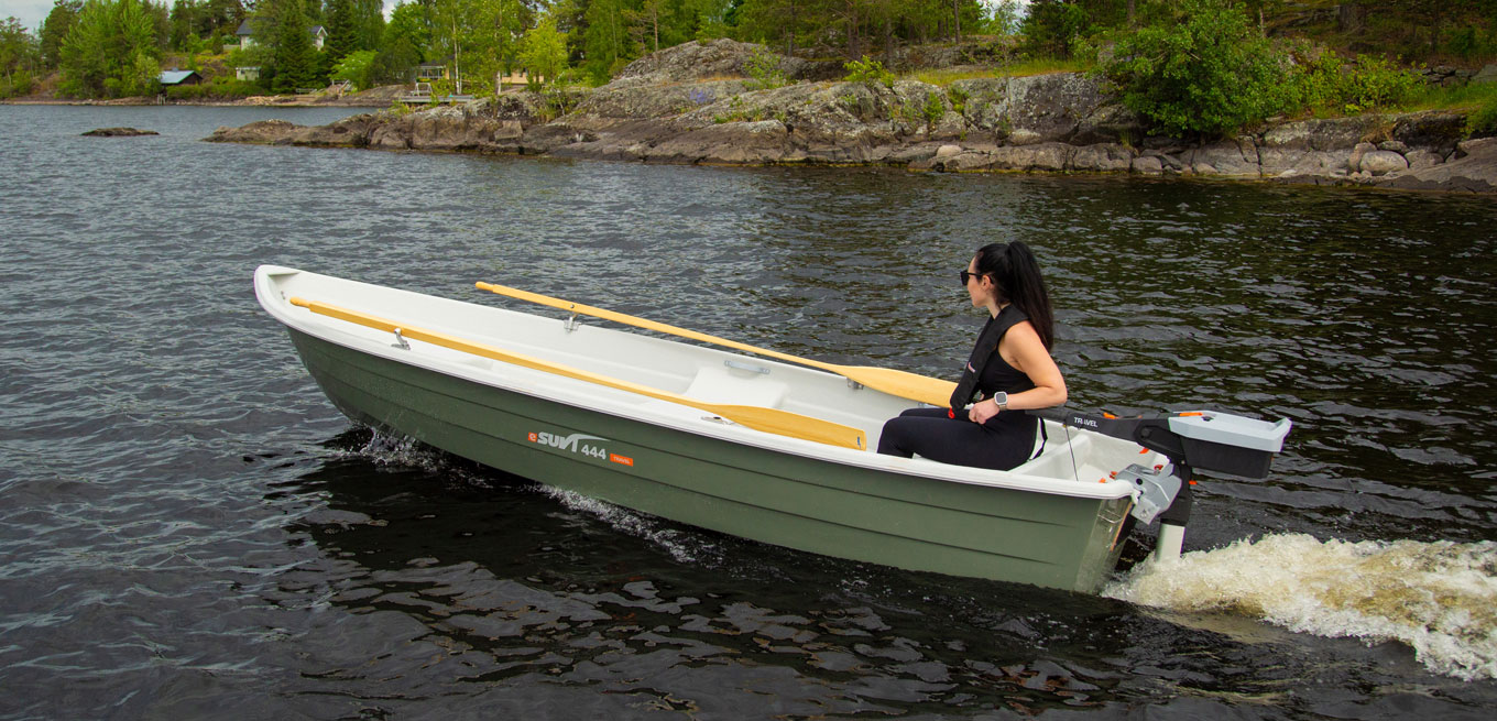 A rowing motorboat model with a broader waterline and higher load-bearing capacity for the cottage and fishing. eSuvi 444 offers excellent rowing performance and stability. The boat slides well thanks to the bottom design and the broad waterline.