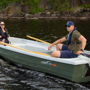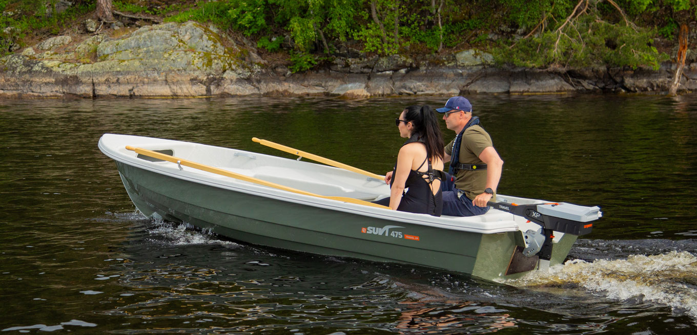 eSuvi 475 is a multifunctional rainwater-draining model for the cottage and fishing. The boat features an even floor for stability and a detachable middle seat for extra space. The boat has a 120 cm long lockable storage space that is suitable for e.g. fishing rods. The foredeck is fixed and has no rope box hatch. However, the space converts into a rope box through the front seat back. Water is drained from the boat even when it is moored. Just remember to remove the drain plug. A steel keel as standard equipment!