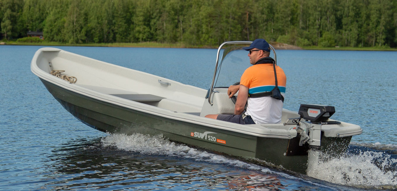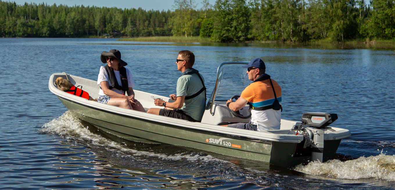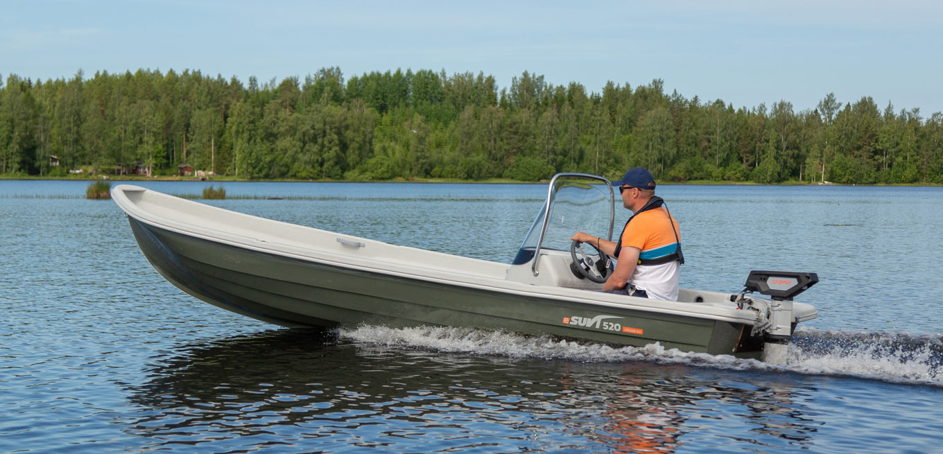 eSuvi 520 Cruise 6.0 is a very stable model featuring a steering console and a large keel. It is ideal for both fishing and cottage activities. This boat has a large open indoor space and sharply elevated bow that ensures smooth travel even in rough conditions. A steel keel as standard equipment!