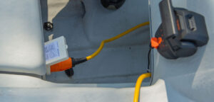 The boat is equipped with a 5 kWh battery and a smaller additional 12 V battery for accessories. Both batteries can be recharged simultaneously with the charging cable included in the delivery.