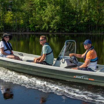 eSuvi 520 Cruise 6.0 is a very stable model featuring a steering console and a large keel. It is ideal for both fishing and cottage activities. This boat has a large open indoor space and sharply elevated bow that ensures smooth travel even in rough conditions. A steel keel as standard equipment!
