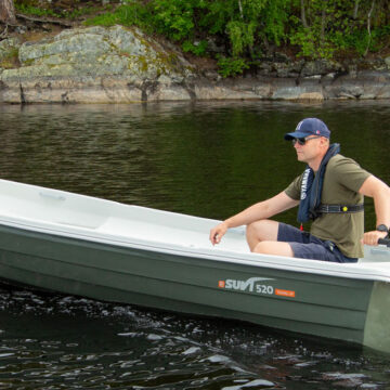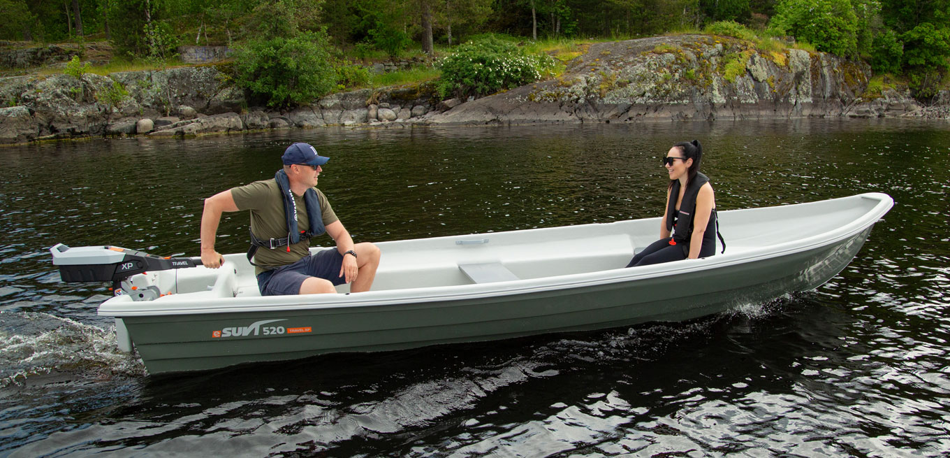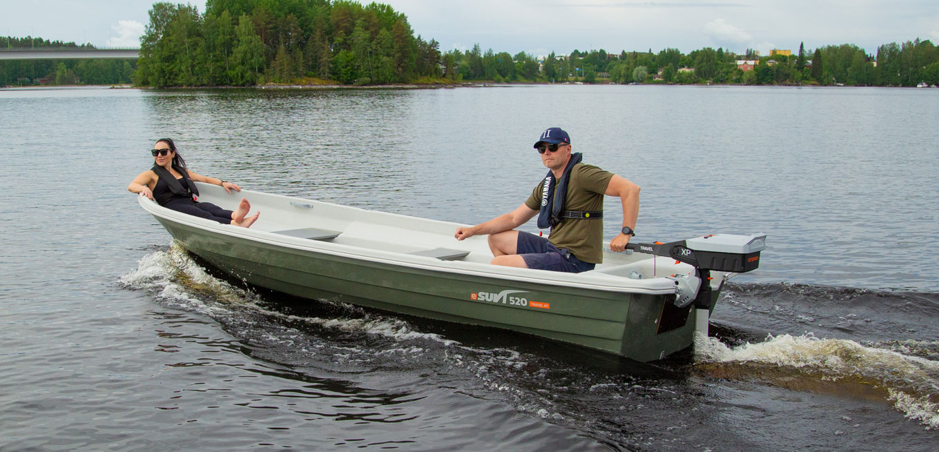 eSuvi 520 is a very stable model featuring a large keel. It is ideal for both fishing and cottage activities. This boat has a large open indoor space and sharply elevated bow that ensures smooth travel even in rough conditions. A steel keel as standard equipment!